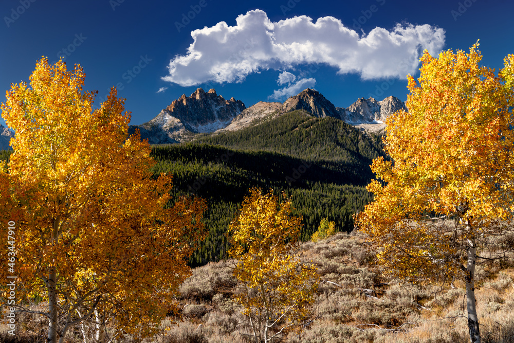 Beautiful autumn colors and Idaho Sawtooth mountains