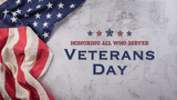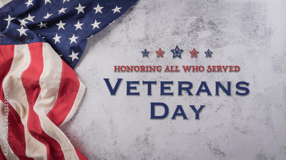 Happy Veterans Day concept. American flags against a dark stone background. November 11.
