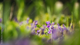 Beautiful Flowers Viola Odorata. Flowering Blooming Plant In Viola Family. Native To Europe And Asia. Background Nature Abstract Natural Green Bokeh. Summertime Background