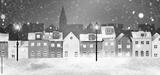 Winter Snow urban City Landscape. Christmas night in town,