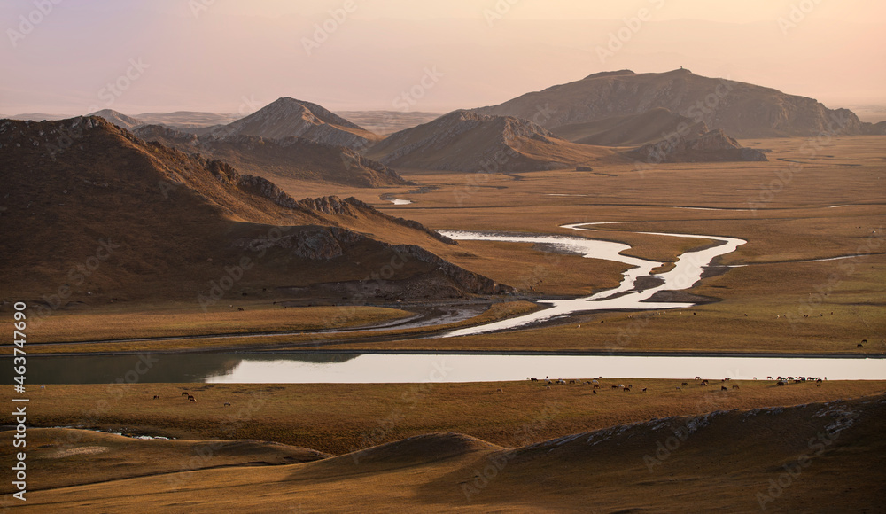 sunset on the Bayanbulak grassland in Xinjiang, China