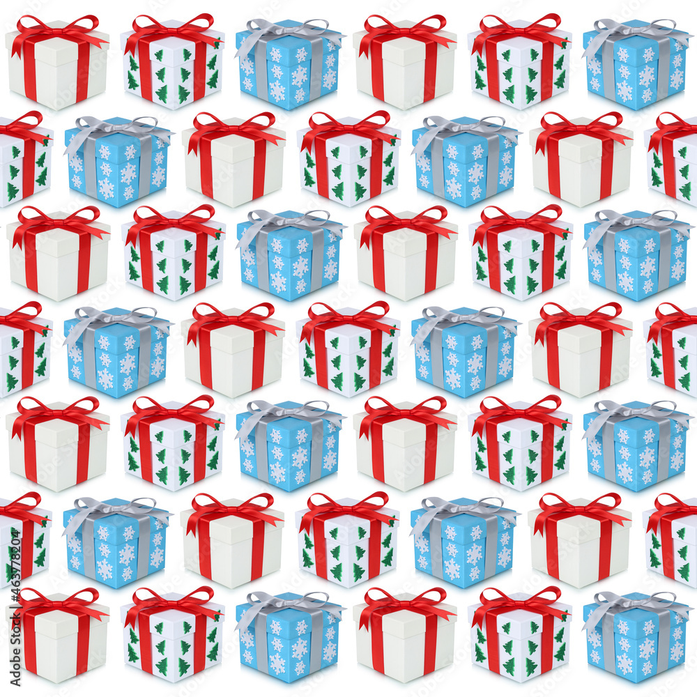 Christmas gifts gift box present background many presents square isolated on white