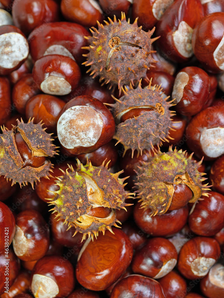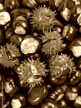 Viele Früchte der Rosskastanie, Aesculus hippocastanum