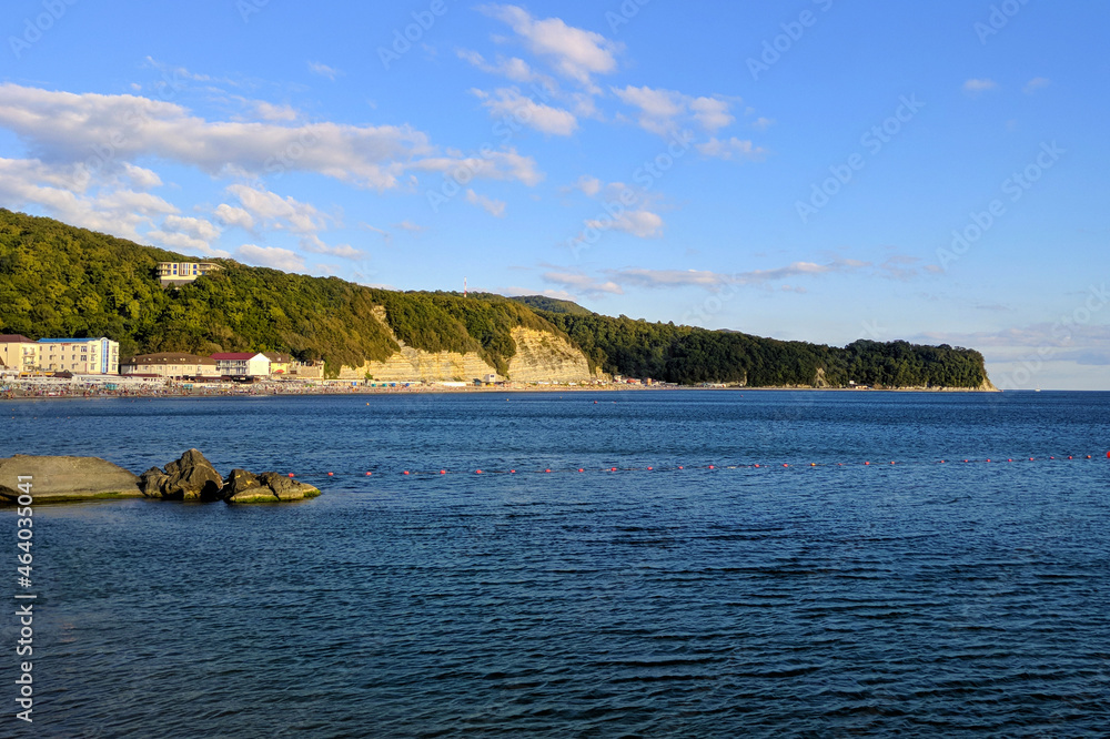 Sea mountain landscape of the Black Sea in summer sunny weather in the morning