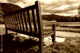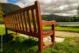 Drewniana ławka, krajobraz górski, dolina w Lake District (Kraina Jezior) obszar w północno-zachodniej Anglii w hrabstwie Kumbria