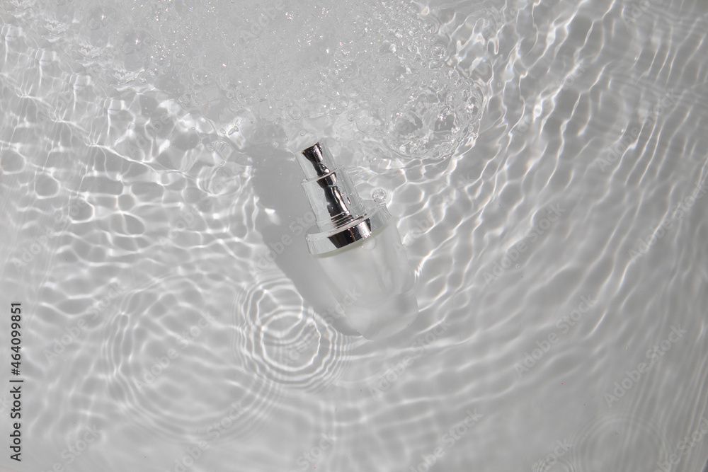 white water fresh background, cosmetic makeup bottle lotion cream product with beauty fashion skincare healthcare mockup