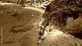 Aerial drone photo of small rocky cove near popular traditional village of Agios Nikitas, Lefkada island, Ionian, Greece