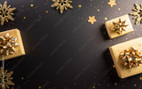 Top view of Black Friday Christmas gift box and golden snowflake on dark background. Shopping concept boxing day and Black Friday composition.