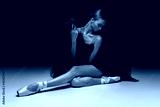 Portrait of young beautiful girl, modern ballet dancers posing isolated on dark background. Feelings, emotions concept