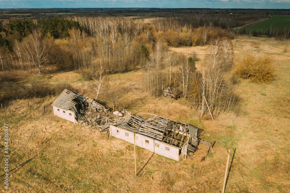 Belarus. Abandoned Barn, Shed, Farm House In Chernobyl Resettlement Zone. Chornobyl Catastrophe Disasters. Dilapidated House In Belarusian Village. Whole Villages Must Be Disposed