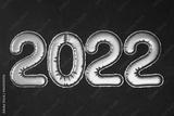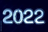 New Year 2022. Foil balloons numbers 2022 on black background. New Year Christmas.