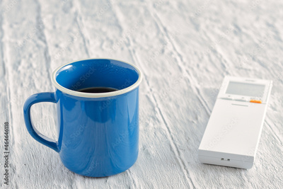 コーヒーとエアコンのリモコン