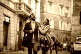 Happy caucasian couple enjoying the walk together