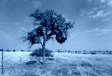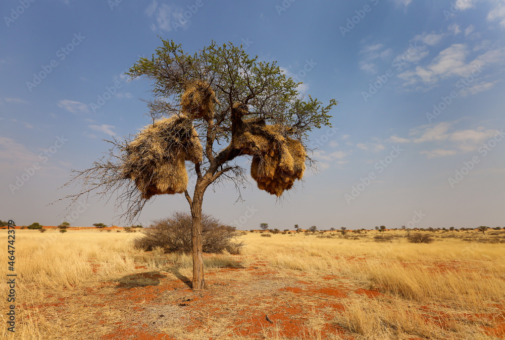 A tree with a large bird's nest in the Kalahari Desert. Namibia