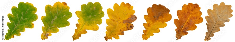 Set of autumn oak leaves in different colors isolated on white