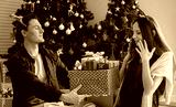 In the concept picture, Christmas gifts. Young Caucasian man giving many gift boxes to a young woman or lover. The woman is excited and shocked when she receives a gift.