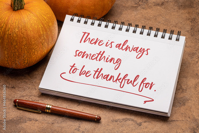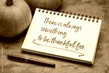 There is always something to be grateful for - handwriting in a spiral sketchbook with a pumpkin, Thanksgiving holiday inspirational concept