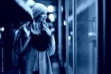 Portrait of happy woman spending time with christmas shopping outdoors in city.