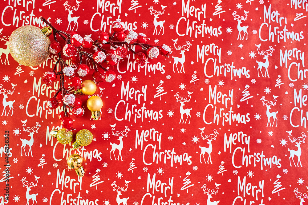 Christmas and new year background. Snowy rosehip on the New Year background.