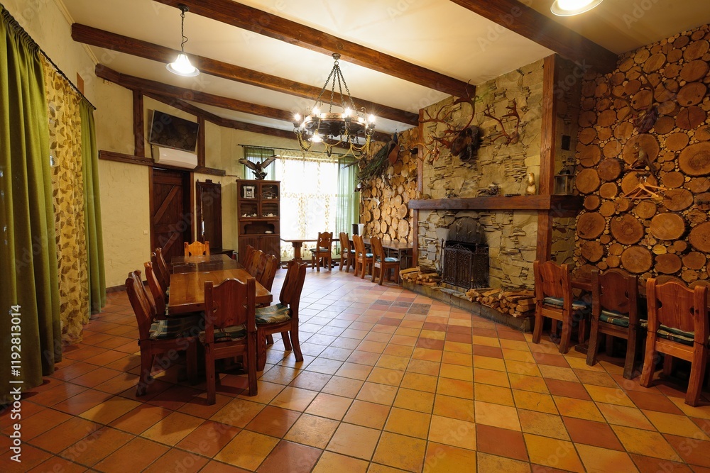 young tall woman is sitting on a chair in hotel near the window in tight purple yoga clothes with a lamp shining from behind