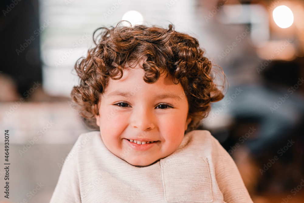 Retrato de un niño caucásico sonriendo viendo a cámara