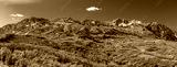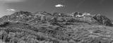 Panoramic view of Snow basin landscape with bright fall foliage around Mont Ogden peaks in Utah
