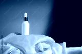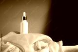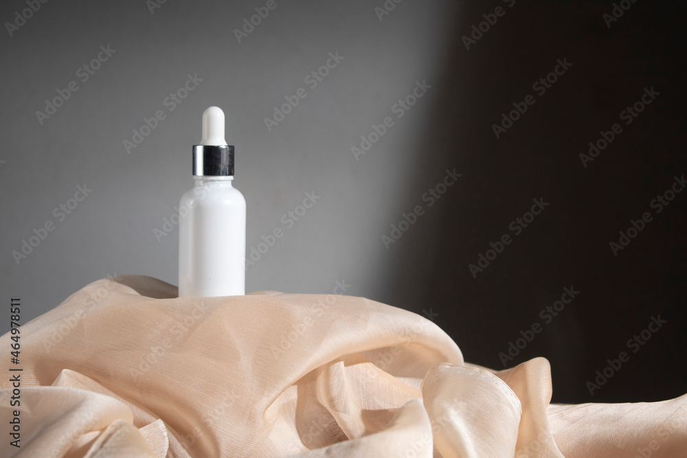 white wood table background with fabric textile, cosmetic makeup bottle lotion cream product with beauty fashion skincare healthcare mockup