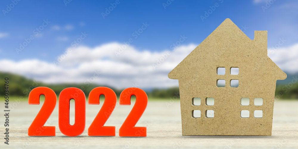 House model and number 2022 with landscape back background
