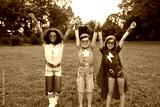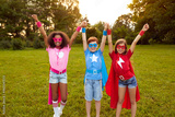 Diverse superheroes celebrating victory together