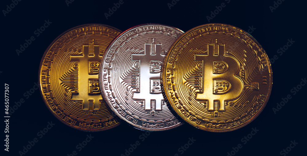 Bitcoin cryptocurrency (crypto currency). Silver Bitcoin and golden Bitcoin symbol. Bitcoin (BTC) cryptocurrency.