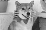 Laughing jocund young asian woman sitting on the floor playing with her Shiba Inu Japanese dog, Cheerful and nice couple with people and pet, Cheerful and nice couple with people and pet. Pet Lover