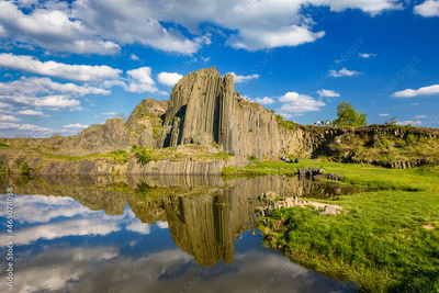 Polygonal structures of basalt columns, natural monument Panska skala near Kamenicky Senov, Czech Republic. Basalt organ pipes of Panska Skala near Kamenicky Senov, Czechia.