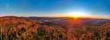 zachód słońca jesienią w górach, Beskid Śląski w Polsce z lotu ptaka