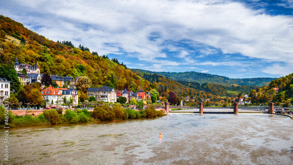 Heidelberg town with the famous old bridge and Heidelberg castle, Heidelberg, Germany