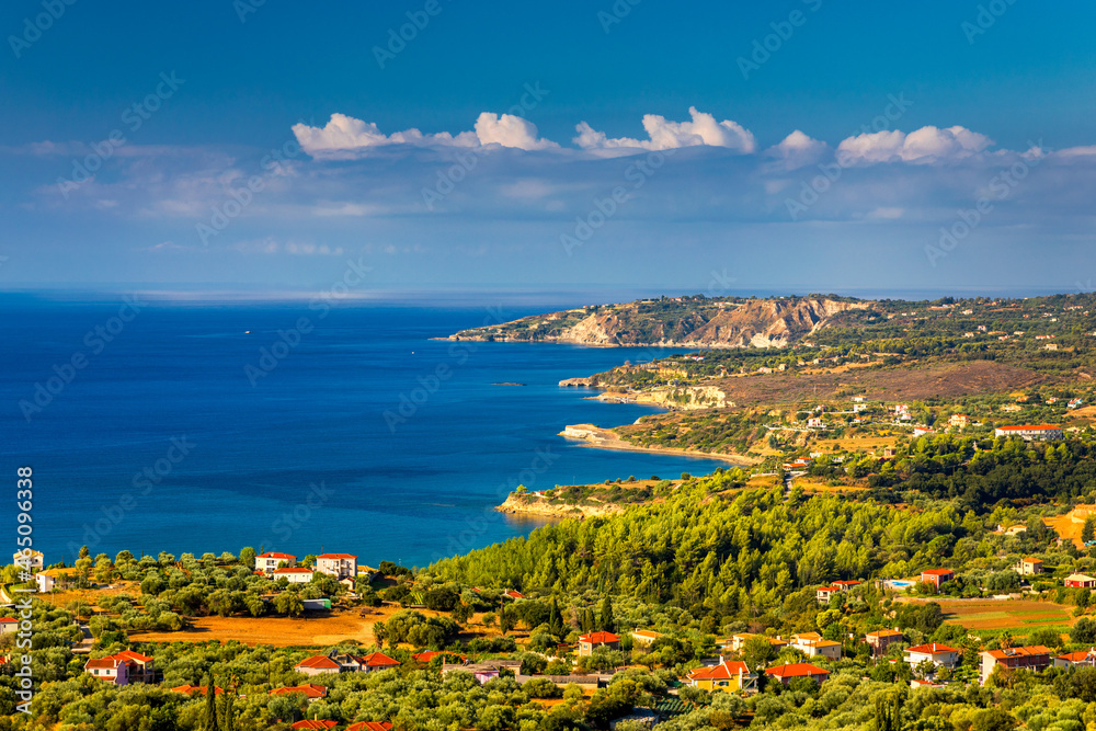 Panoramic view of coastline of Cephalonia or Kefalonia island, Ionian Sea, Greece. Amazing view of Kefalonia, Greece.