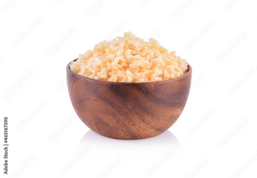 Puffed rice in a bowl over white background