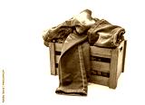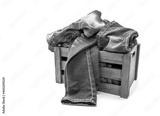 jeans over old grunge wood box