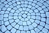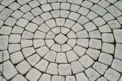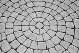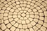 The tiles are laid out in a circle, geometric symmetrical masonry stone