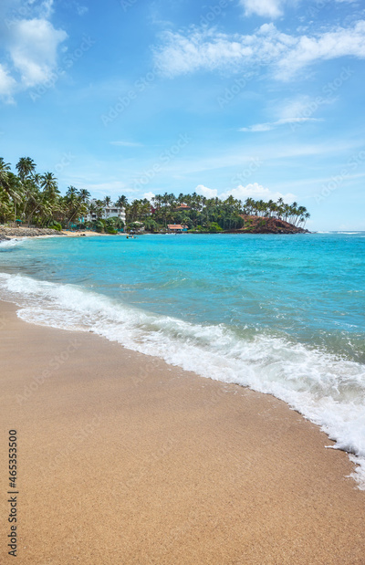 Scenic empty tropical sandy beach, Sri Lanka.