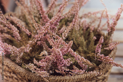 Kwiaty w koszyku. Ozdoba w stylu vintage w mieście. Kwiaty ozdobne