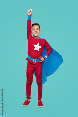 Brave superhero boy in costume