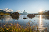 Matterhorn mountain and Lake Stelli (Stellisee) at sunset, Zermatt, Valais, Switzerland