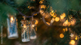 Christmas garland on the branches of a fir tree, with a side of lights. A festive tradition. Selective focus.