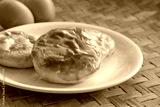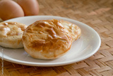 close up round bread decorated with eggs
