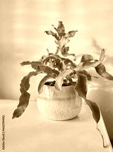 PHLEBODIUM AUREUM (BLUE STAR FERN) in yellow pot. Room plants
