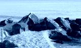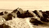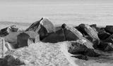 Black and white photo with beautiful wet stones on black and white background in style of old black and white retro photo as sample of black and white photo