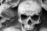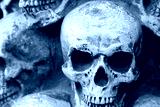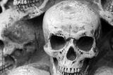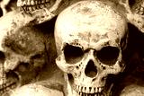 Artificial human skull close-up as postcard with skull or background with skull or photo with skull for background for postcard for congratulations to Halloween