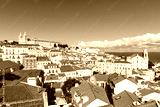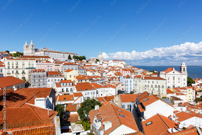 Lisbon Portugal city travel view of Alfama old town with church Sao Vicente de Fora