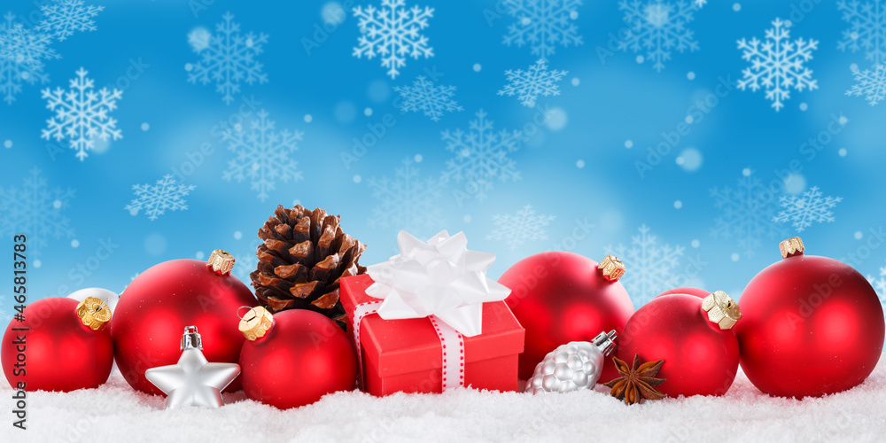 Christmas card with balls baubles banner copyspace copy space decoration gift present ornaments