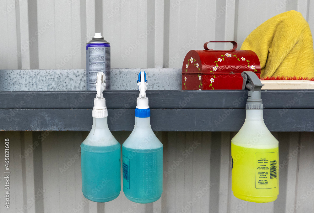 Hampshire, UK. 2021. Car wash business accessories for washing and cleaning vehicles on a shelf